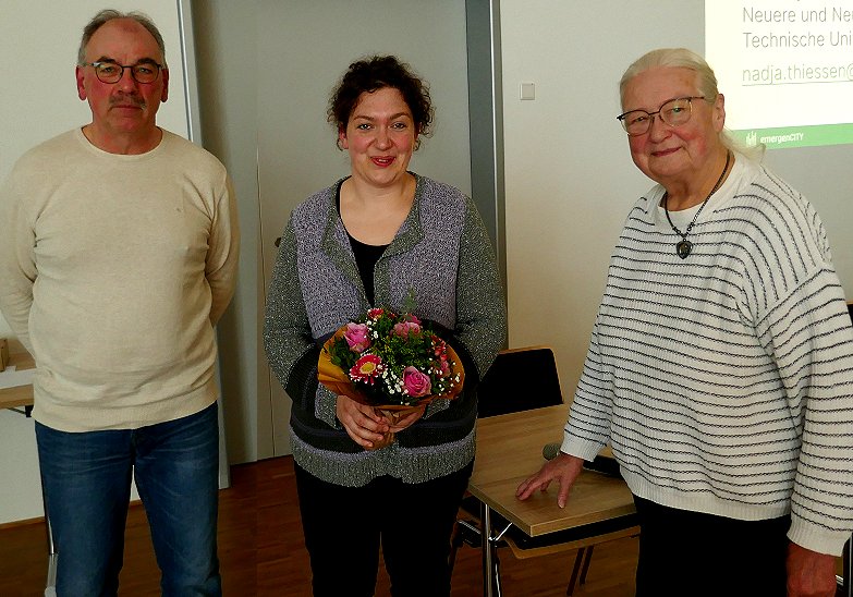 Bei der Referentin Frau Dr. Nadja Thiessen (m.) bedanken sich die beiden Vorsitzenden Ute Ansahl-Reissig und Lothar Walbrecht