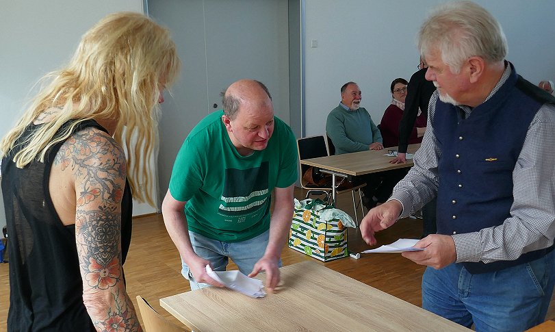 Die Stimmenauszähler bei der Wahl des Vorsitzenden (v.l.) Gabi Killian, Ralf Uhlemann, Dr. Johann Siegl