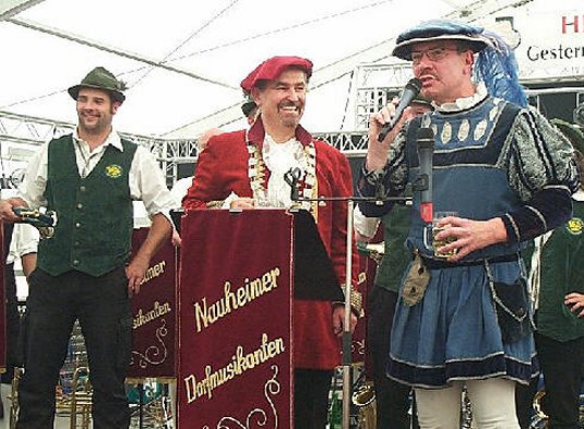 Bürgermeister Helmut Fischer besiegelt mit seinem Treburer Amtskollegen Jürgen Arnold den ''Frieden von Zürpenich''